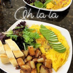 Cute little breakfast spot up in the rolling estates! The servers were so kind & attentive!! They did seem a bit short staffed on a Sunday morning, however they were very communicative about wait times & always checked in us!! We came with no reservation Sunday morning for two people & were sat down immediately Now for the food: Creamy Chicken Crepe 8/10: WOW I was in between this & the chicken delight & the server recommended the creamy chicken & it did NOT disappoint!! It was incredibly delicious! A bit oily, but overall tasty! Banana frost French toast 7/10: which is had more of the banana frost & more banana slices! The bread was a bit hard Big Breakfast 8/10: the potatoes were the right portion & everything you could have wanted for a filling breakfast! Overall cute spot for a brunch date! Can accommodate small to medium parties. Inside is a bit small, however there is outside seating with umbrellas as well